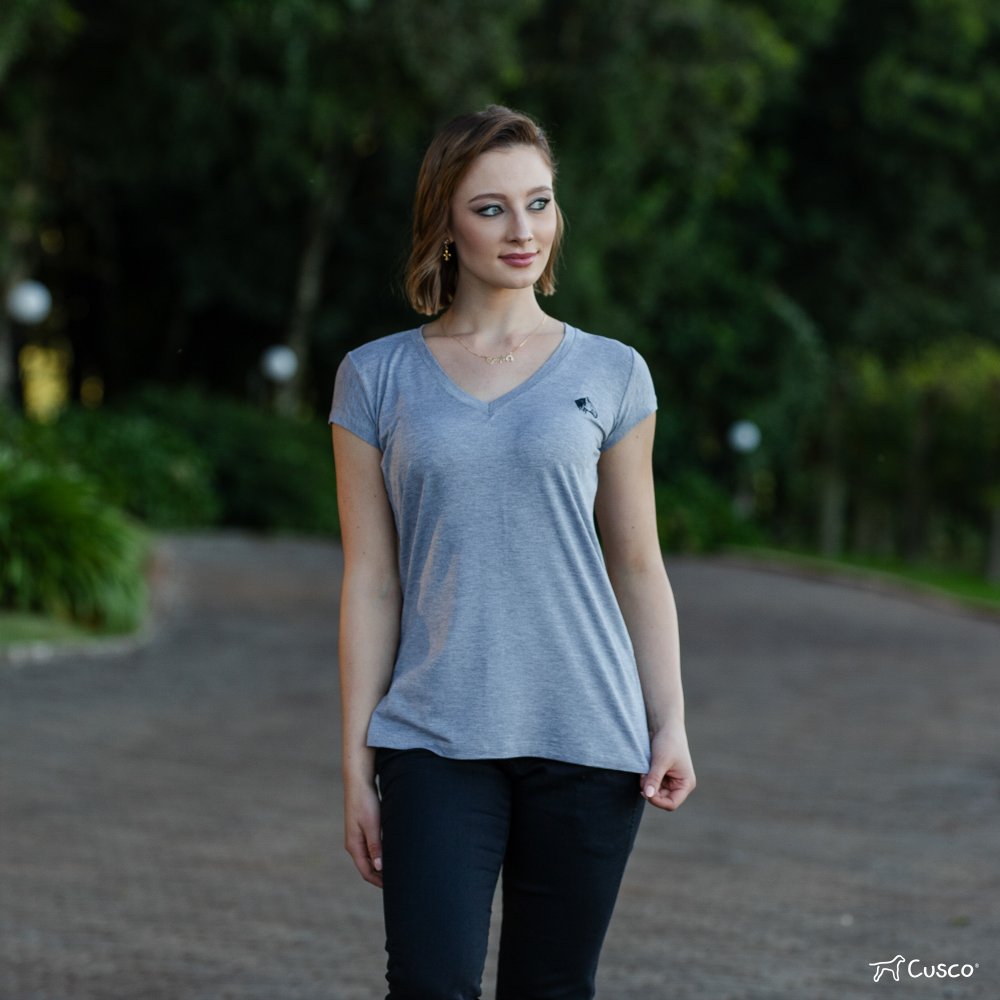Baby Look Decote V Cusco Lisa Bordada – Cusco Artigos Gaúchos