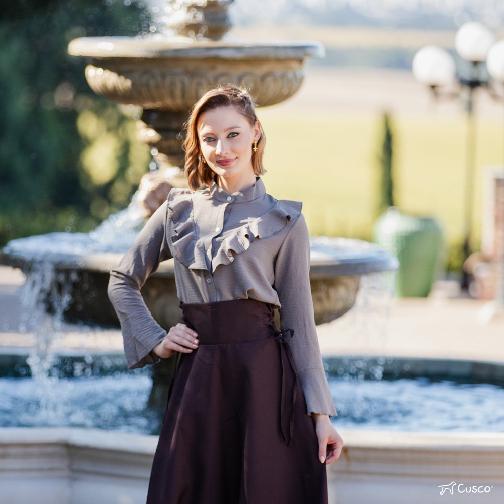 Seu grande destaque está nos babados na parte frontal e nas mangas, que trazem um toque romântico e refinado, valorizando a feminilidade e garantindo presença marcante no visual. A modelagem é pensada para oferecer ótimo ajuste ao corpo, sem perder a leveza e liberdade de movimento.