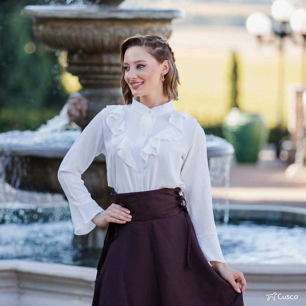 Camisa Cusco Crepe Mustang com Babado na Frente e nas Mangas
