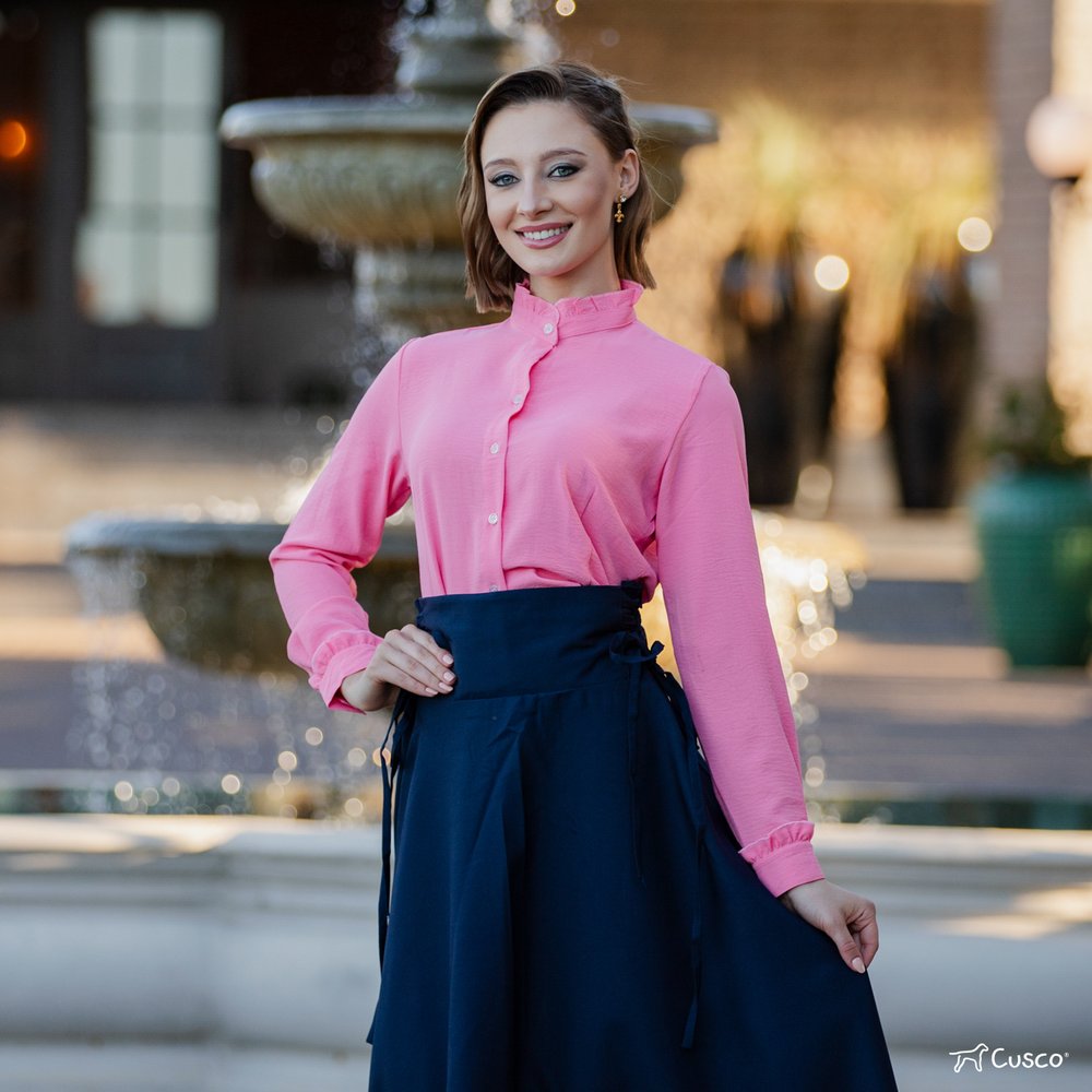 O destaque está na gola e punhos franzidos, que adicionam charme e sofisticação ao design clássico da camisa. O fechamento frontal por botões traz praticidade, enquanto a modelagem atemporal garante versatilidade para diferentes combinações – seja com bombachas, saias ou calças, no campo ou na cidade.