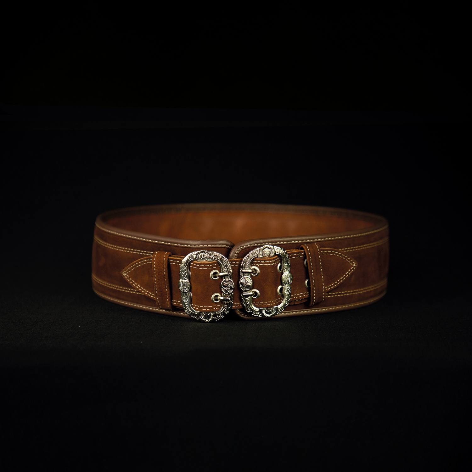 O cinto gaúcho masculino é mais largo, reforçado e desenhado para uso prático no campo, diferentemente dos cintos convencionais. Ele tem encaixes especiais para facas e acessórios campeiros.