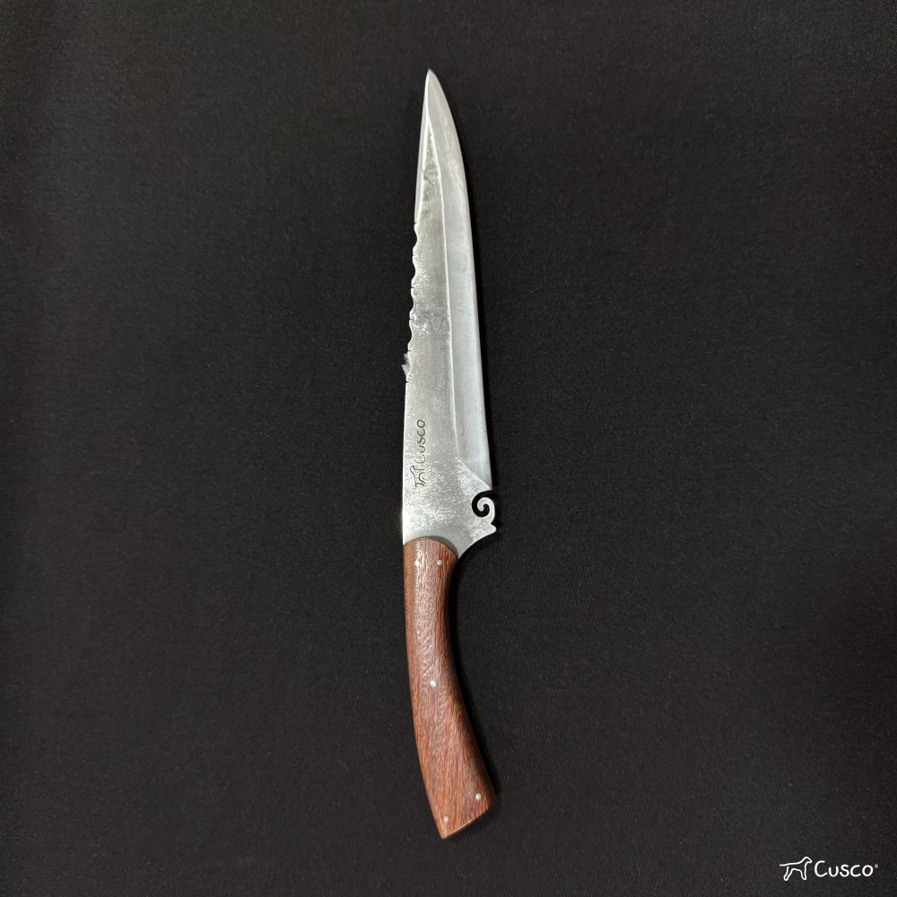 Faca Cusco Charrua ''8” Inox Brut Forge 2mm – Cabo em Pau-Brasil com Bainha em Sola