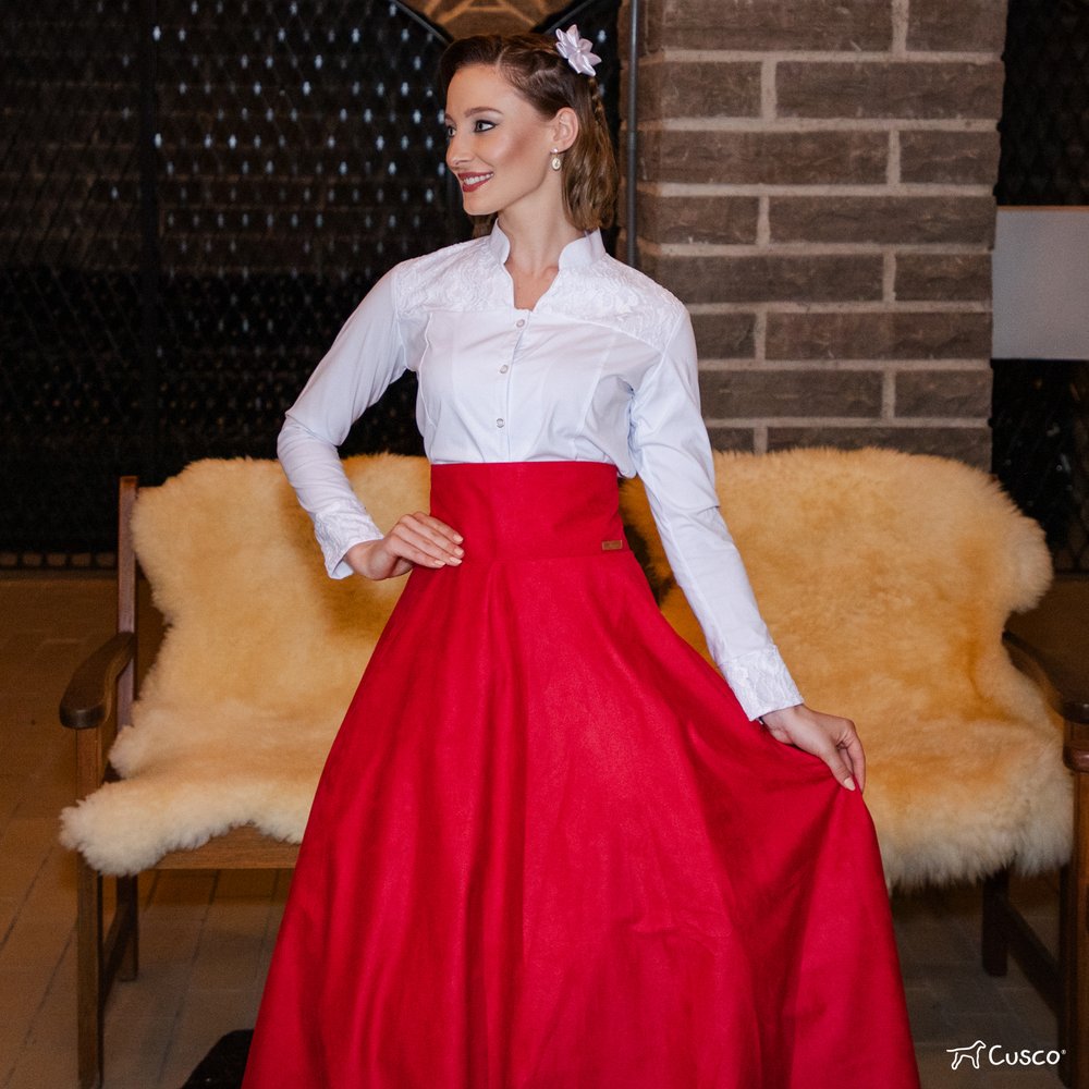 Com cintura alta e comprimento longo, a peça garante um visual refinado e feminino, ideal para compor looks tradicionais e modernos. A cor rosa vibrante adiciona personalidade e delicadeza ao visual, tornando a saia versátil para diversas ocasiões — desde eventos culturais e festas típicas até produções casuais mais elaboradas.